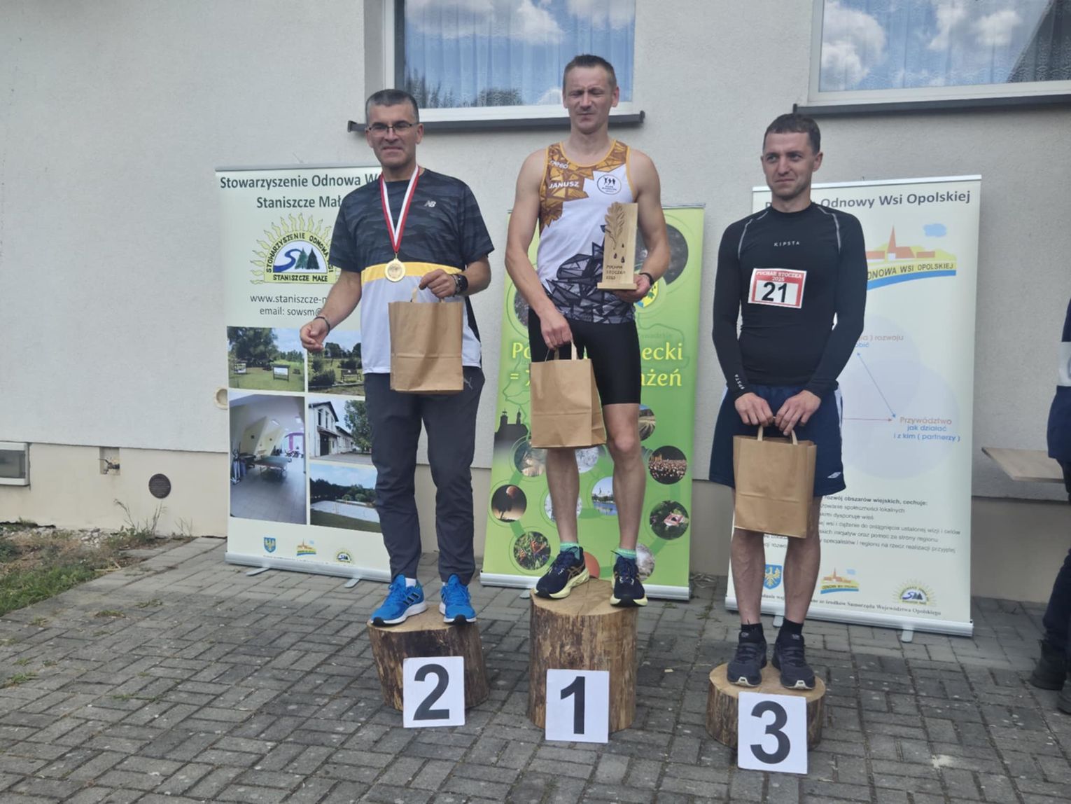 Tak naprawdę w imprezie nie jest ważny dystans, a dobra zabawa i rodzinna rekreacja. Po wysiłku dla pokrzepienia ciała były kawa, ciasto, napoje i pieczone kiełbaski, wszystko za darmo dla zgłoszonych wcześniej uczestników spotkania. Dla zwycięzców biegów przełajowych w poszczególnych kategoriach wiekowych przewidziano również puchary, medale oraz upominki. Uczestnicy marszu nordic walking także nie wyszli z pustymi rękami.