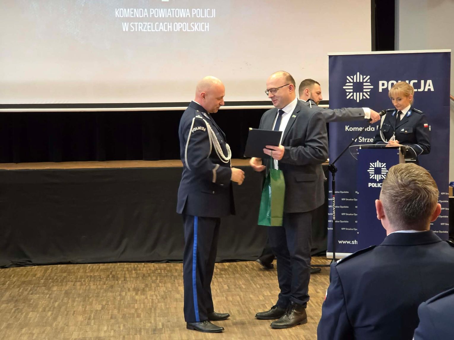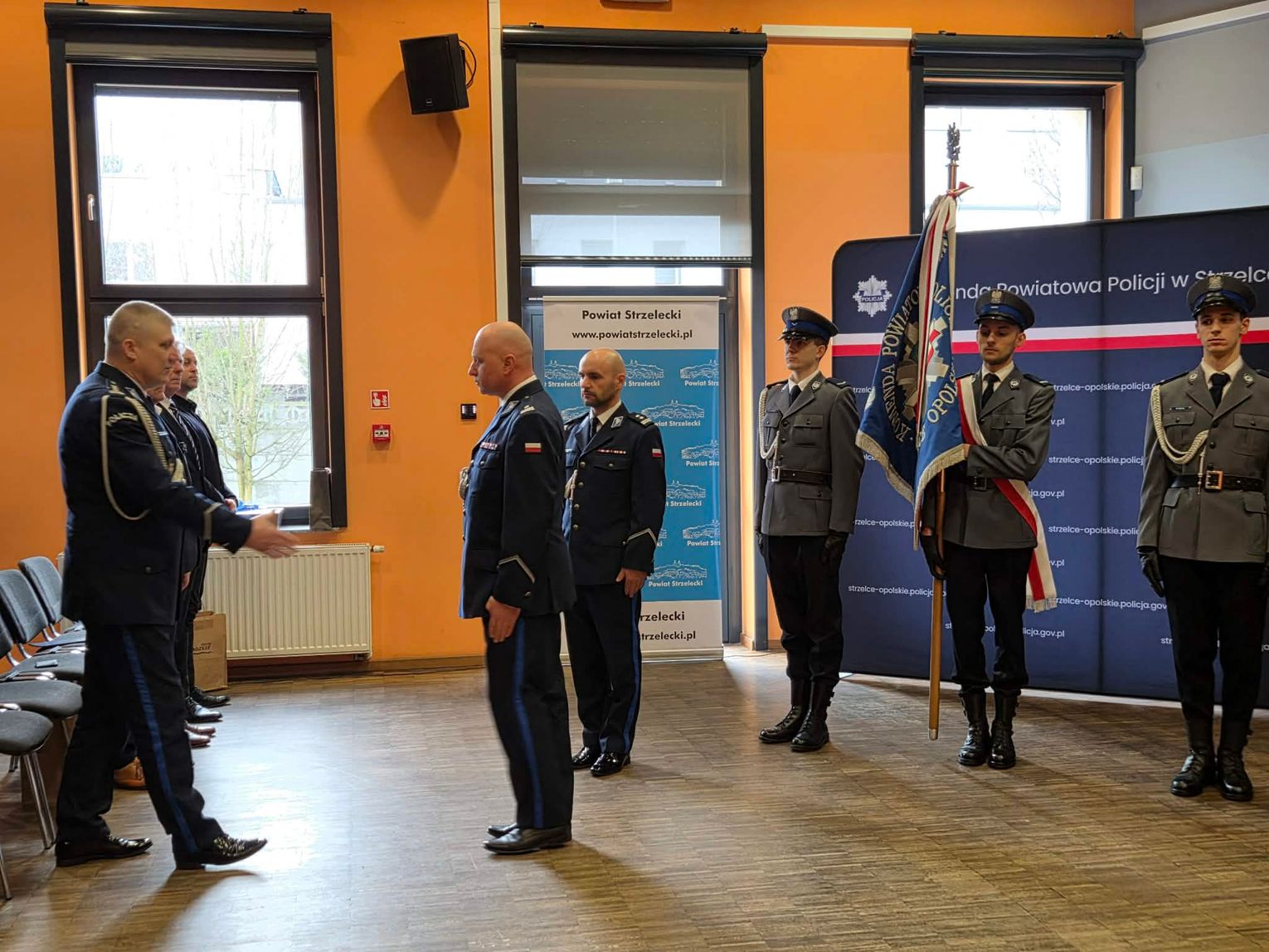 Podczas uroczystej zbiórki podinspektor Rafał Lejczak symbolicznie pożegnał się z policyjnym mundurem w związku z przejściem - po 25 latach służby - na zasłużoną emeryturę. Funkcję komendanta KPP w Strzelcach Opolskich pełnił przez 13 miesięcy. Uroczystość była okazją do podziękowania za wieloletnią służbę dotychczasowemu komendantowi, a także powitanie nowego szefa policji.