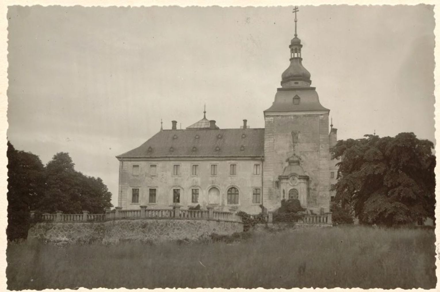 Ks. Glaeser relacjonuje, iż Rosjanie weszli do pałacu 25 stycznia 1945 roku. Strachwitzów już nie było. Zarządca czekał na nich przy kaplicy z kluczami w ręce. Żeby weszli, nie niszcząc. Nie docenili tego gestu. Pracownik, wzięty najwyraźniej przez „wyzwolicieli” za właściciela, zginął na miejscu. Kaplica została przez Sowietów ograbiona ze wszystkiego, co cenne, i podpalona. Grube mury ochroniły resztę pałacu od ognia. Do 1946 roku był tu lazaret, a przez kolejną dekadę dom dziecka.