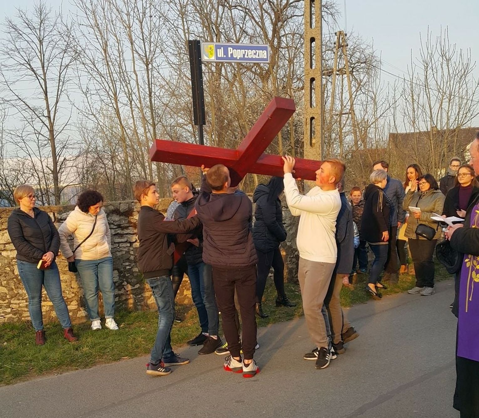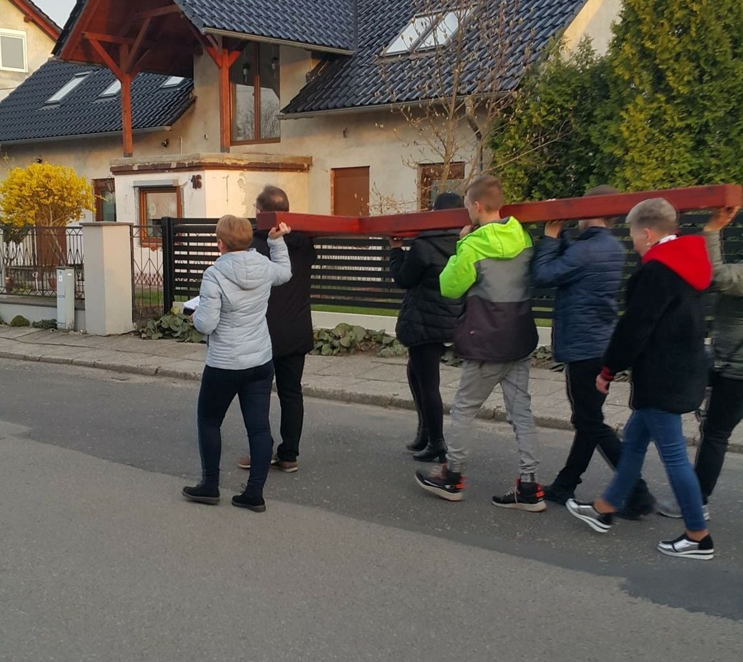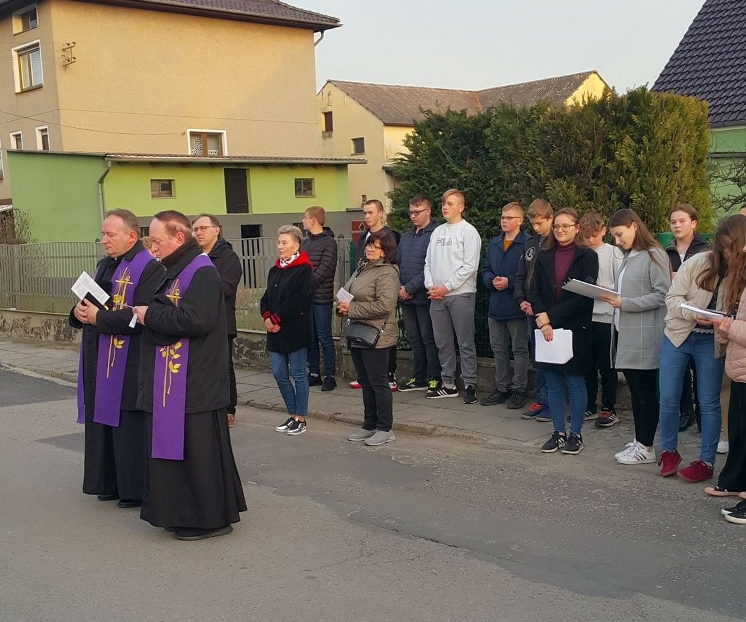Kilka dni później, bo w środę, 13 kwietnia, odbyła się droga krzyżowa ulicami Dziewkowic. Jej organizatorem była miejscowa młodzież. Po wieczornej mszy św. mieszkańcy przeszli ulicami Plac Klasztorny, Poprzeczną, Zieloną, Strzelecką, W. Korfantego i Ogrodową. Całość zakończyła się przy Pomniku Króla Wieków na placu kościelnym.