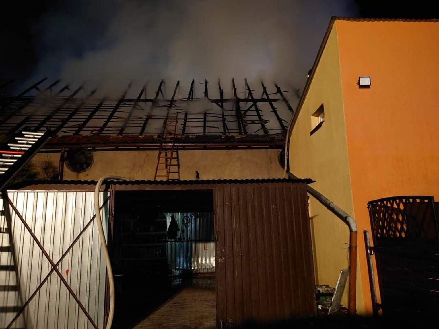 Ze wstępnego zgłoszenia wynikało, że pali się dom, ale dzięki szybkiej reakcji strażaków udało się go obronić przed ogniem. Natomiast - pomimo wielogodzinnej akcji gaśniczej z udziałem 12 zastępów straży pożarnej - niemalże całkowitemu spaleniu uległ budynek gospodarczy przylegający do domu. Straty strażacy oszacowali wstępnie na około 400 tys. zł.