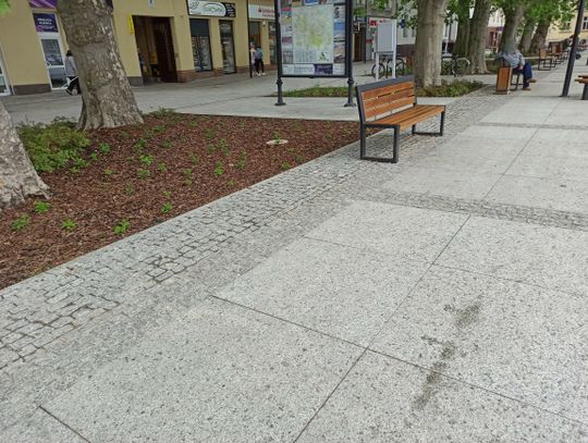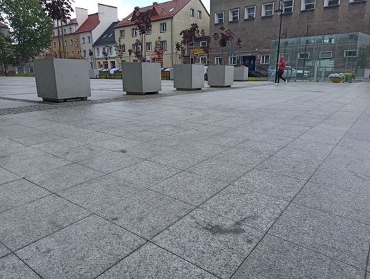 Plamy na płycie Placu Żeromskiego w Strzelcach Opolskich