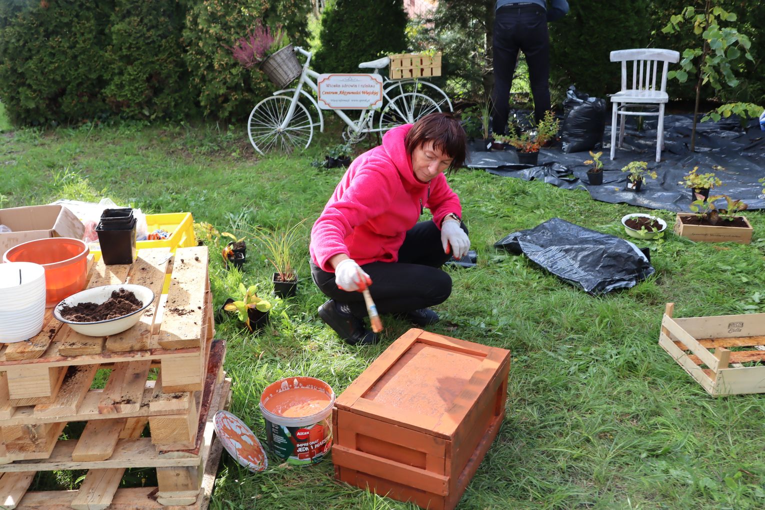 - Przyjeżdżamy do poszczególnych miejscowości i przywozimy wszystkie potrzebne materiały. Mamy 25 roślin, lipę, zestaw palet, impregnatów do drewna, śruby, pędzle, folie, specjalne farby do malowania tkanin - wymienia Szymon Grudziński z firmy Modra Sowa, która realizuje projekt we współpracy z Czystym Regionem.