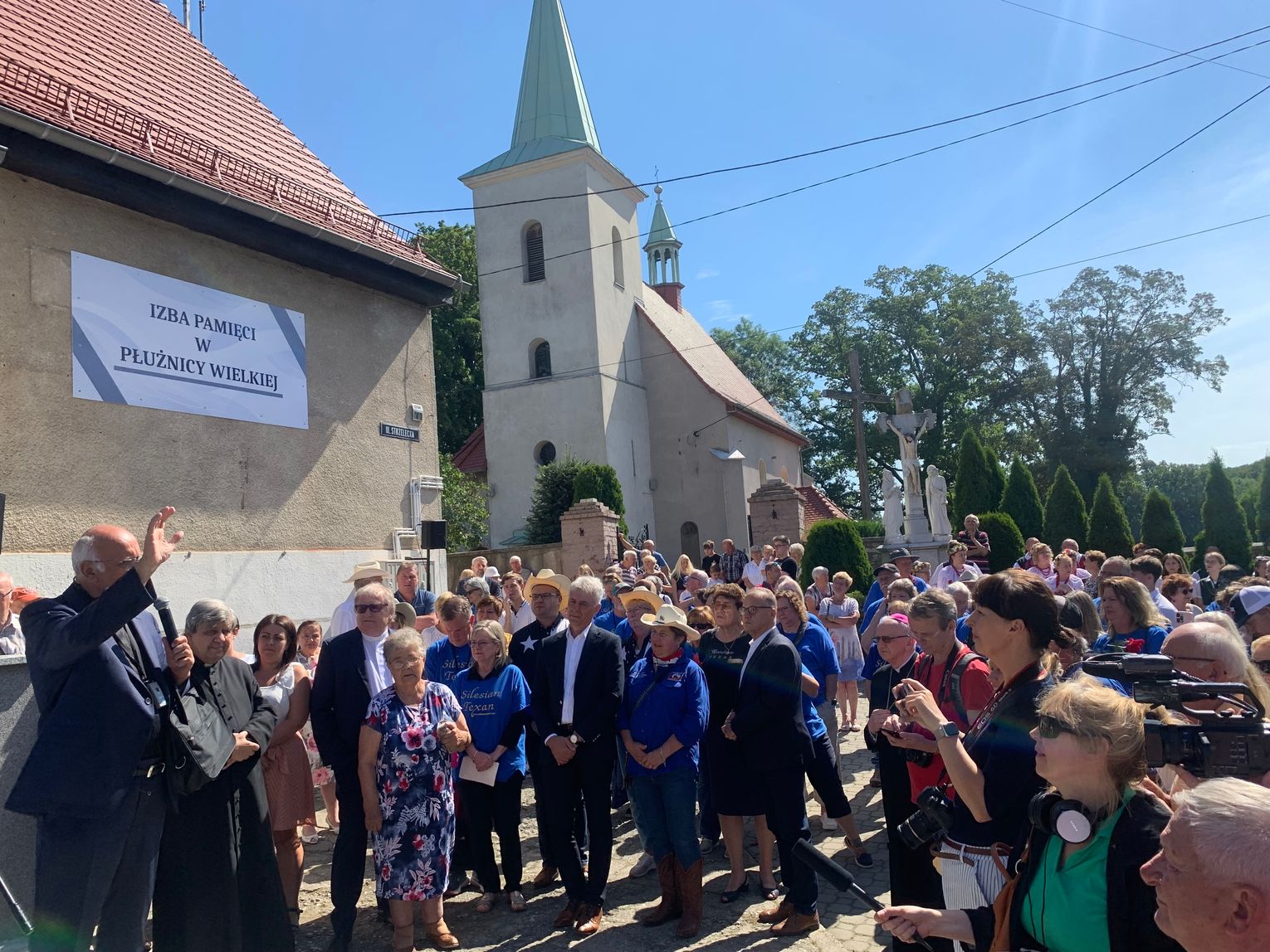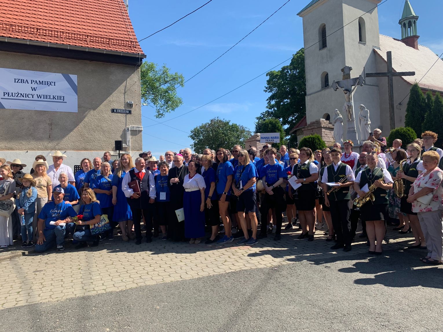 Starsza mieszkanka Płużnicy Wielkiej mówi lekko drżącym głosem do mikrofonu: Czy jest tu ktoś z rodziny Jarząbek? Ksiądz Kurzaj tłumaczy pytanie na język angielski, po czym z grupy gości w niebieskich koszulkach z napisem „Silesia-Texas” unosi się ręka w górę, czemu towarzyszy jęk wzruszenia oraz gromkie brawa. Starsza pani dodaje potem, że do Teksasu wyjechało ośmioro członków jej rodziny, a zza oceanu niedawno przysłano jej książkę z drzewem genealogicznym. Wzruszona pokazuje ją zebranym w miejscu, które dziś jest łącznikiem tego, co zostało rozdzielone półtora wieku temu.